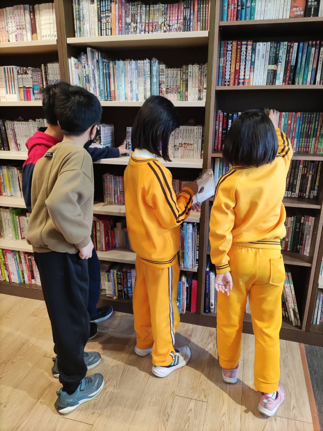 帶著週三班的孩子來到書店,跟孩子們說明進書店後的任務,觀察感受和挑選喜愛的書,我們一行人便安靜地在書店裡走動、翻閱書。
